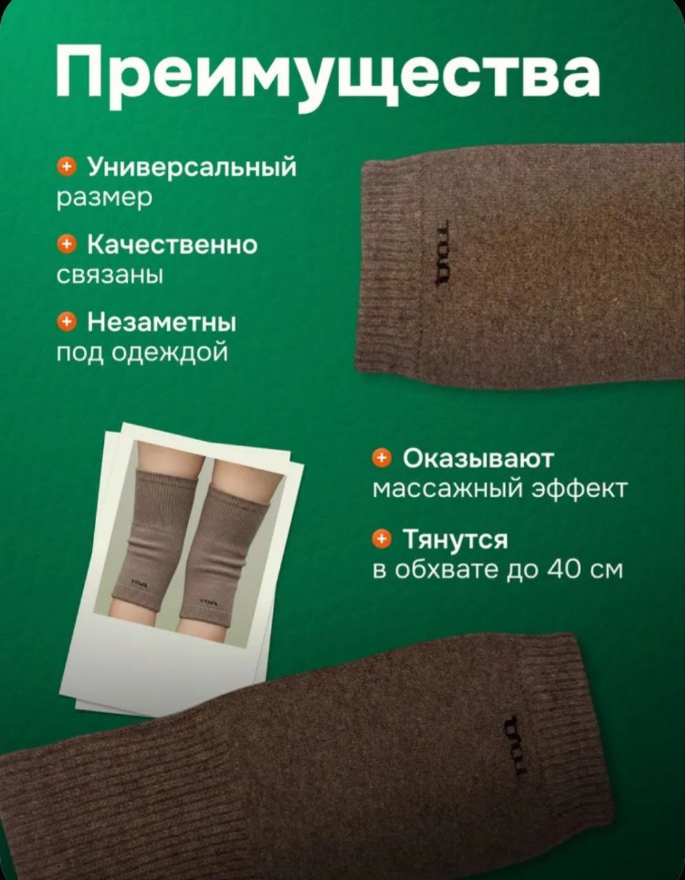**Гипоаллергенные свойства:** Верблюжья шерсть мягкая и не вызывает раздражения кожи, что делает наколенники подходящими для людей с чувствительной кожей.